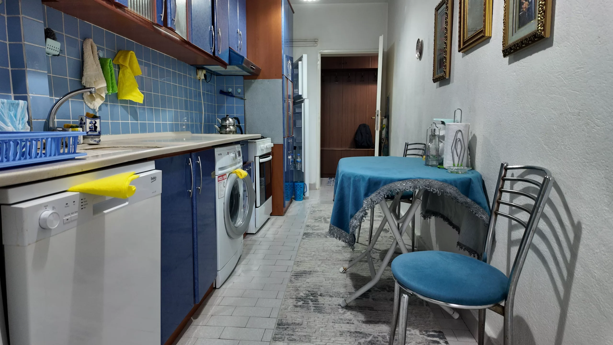 Oturma grubu, yemek masası, yatak–dolap, TV ve beyaz eşyalar (buzdolabı, çamaşır makinesi, fırın/ocak, bulaşık makinesi) hazır. Detaylı eşya listesi için iletişime geçebilirsiniz.